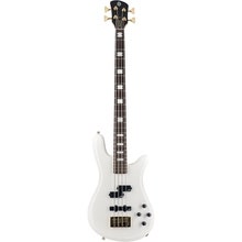Elbas, 4 strängar, kropp i Nato Mahogany, lönnhals, Amara Ebony-greppbräda, Passiva P/J-pickuper, Vit finish.