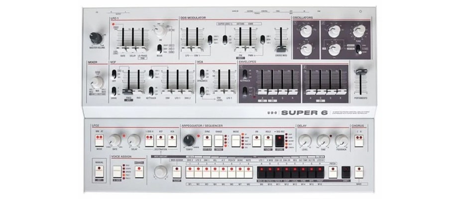 Super 6 är en 12-voice polyfonisk, Binaural Analog-Hybrid Desktop Synthesizer